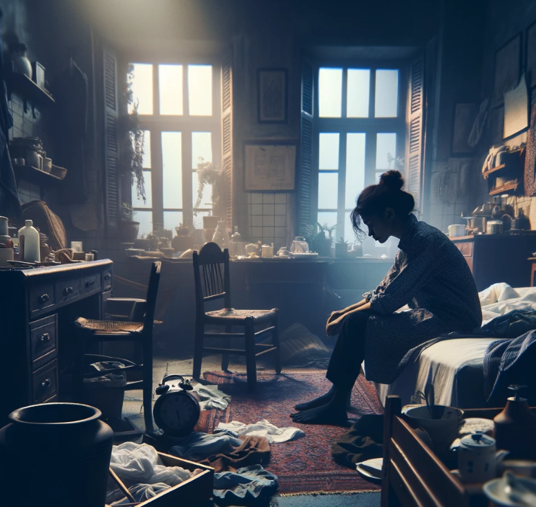 She woke up at 5 am – out of habit, saw the room a mess, dishes piled high. She didn’t lift a finger and just went back to bed. Couldn’t sleep but laid there anyway.