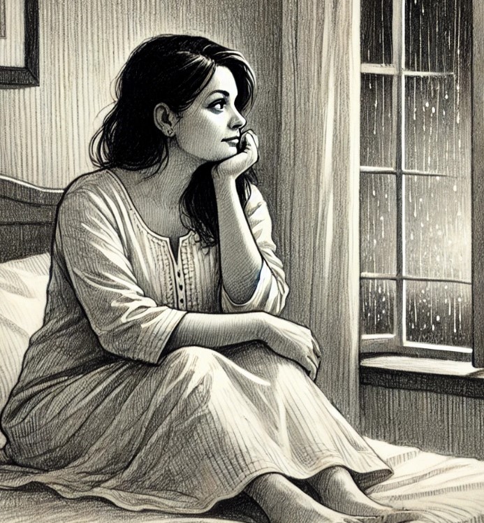 Later, as midnight rain showered against the window, she watched her partner sleep peacefully beside her, his soft snores filling the quiet room. Yet, within her, a sudden emptiness swelled—hollow and cold. She sat at the edge of the bed, closed her eyes, and a dream washed over her—a dream of herself in a dimly lit room.